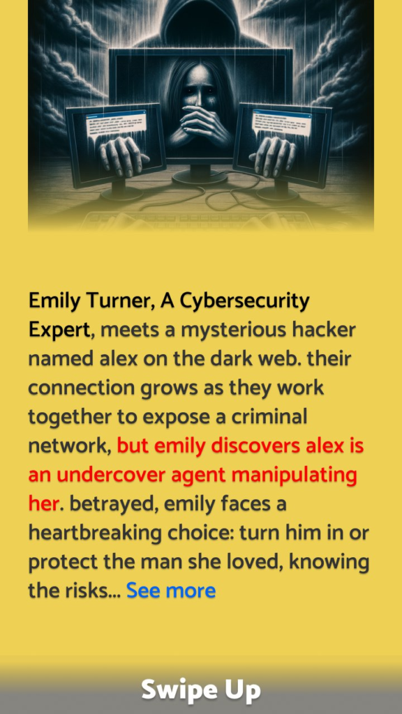 As their connection deepens, Emily discovers that Alex is on a dangerous mission to expose a powerful criminal network operating in the shadows of the dark web. Against her better judgment, she offers to help him, risking her career and safety. Together, they navigate through encrypted messages, uncovering secrets that put them both in the crosshairs of ruthless criminals. Their mutual respect and admiration quickly turn into a deep, passionate love, but they know the stakes are high.