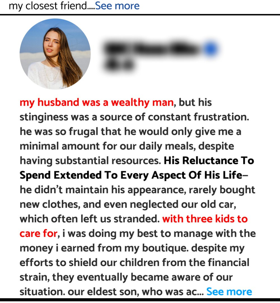 My husband was a wealthy man, but his stinginess was a source of constant frustration. He was so frugal that he would only give me a minimal amount for our daily meals, despite having substantial resources. His reluctance to spend extended to every aspect of his life—he didn’t maintain his appearance, rarely bought new clothes, and even neglected our old car, which often left us stranded. With three kids to care for, I was doing my best to manage with the money I earned from my boutique. Despite my efforts to shield our children from the financial strain, they eventually became aware of our situation. Our eldest son, who was accepted into university, noticed the disparity. When he asked why his father wasn’t contributing to his education, I had to lie and say that his father was responsible.