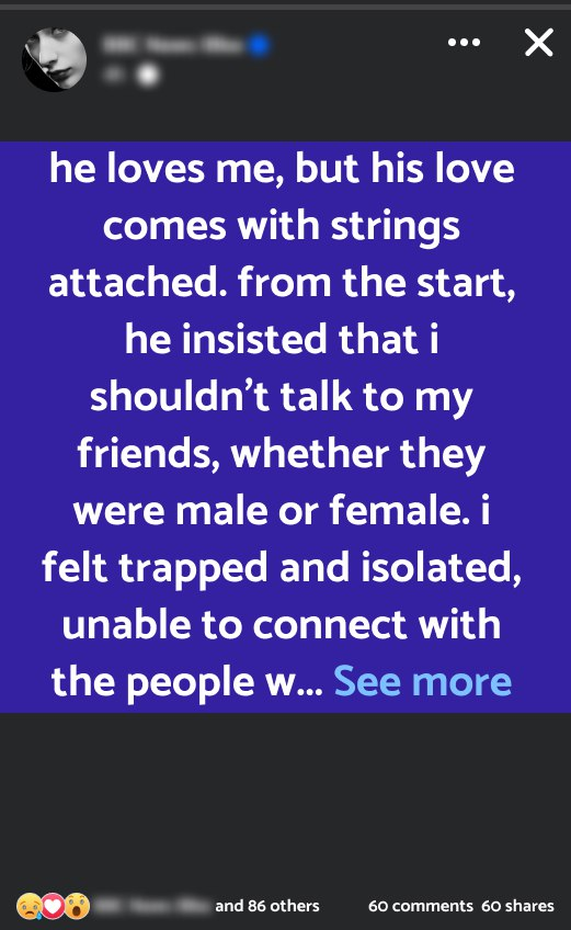 He loves me, but his love comes with strings attached. From the start, he insisted that I shouldn’t talk to my friends, whether they were male or female. I felt trapped and isolated, unable to connect with the people who once meant so much to me. Despite his insistence on controlling my social interactions, he seemed to have no qualms about moving around freely and socializing with others. This double standard was confusing and hurtful.