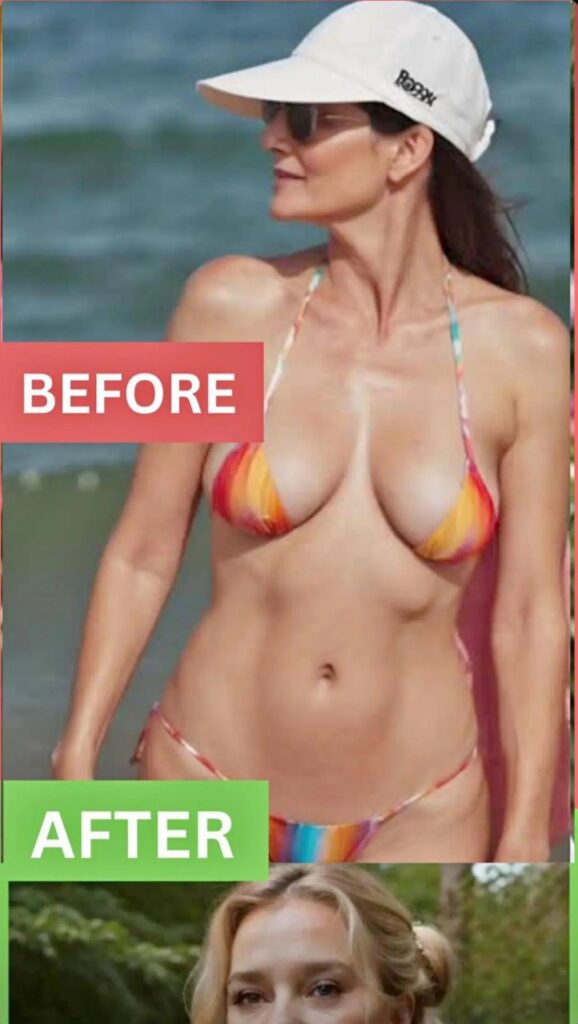 A woman in a swimsuit exudes confidence, embracing her body and age with pride. She inspires others to love themselves, proving that beauty is timeless and ageless.