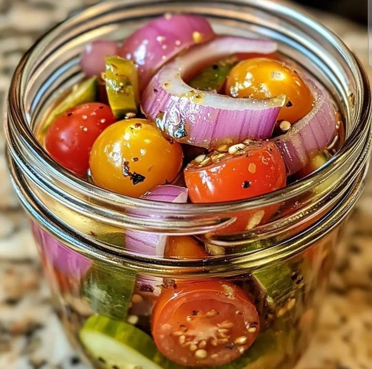 Pickled Cherry Tomatoes, Red Onions, and Cucumbers