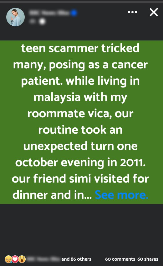Unmasking the Online Deception, TEEN SCAMMER TRICKED MANY, POSING AS A CANCER PATIENT. While living in Malaysia with my roommate Vica, our routine took an unexpected turn one October evening in 2011. Our friend Simi visited for dinner and introduced us to her friend Ryan via Skype. Ryan, a 19-year-old with a tragic backstory, seemed to be struggling with cancer and had lost his family. His online presence appeared authentic, and we accepted his friend request out of courtesy. Vica quickly became engrossed in phone conversations with Ryan, who, despite his claimed illness, never wanted to video-call. Things took a… See more.