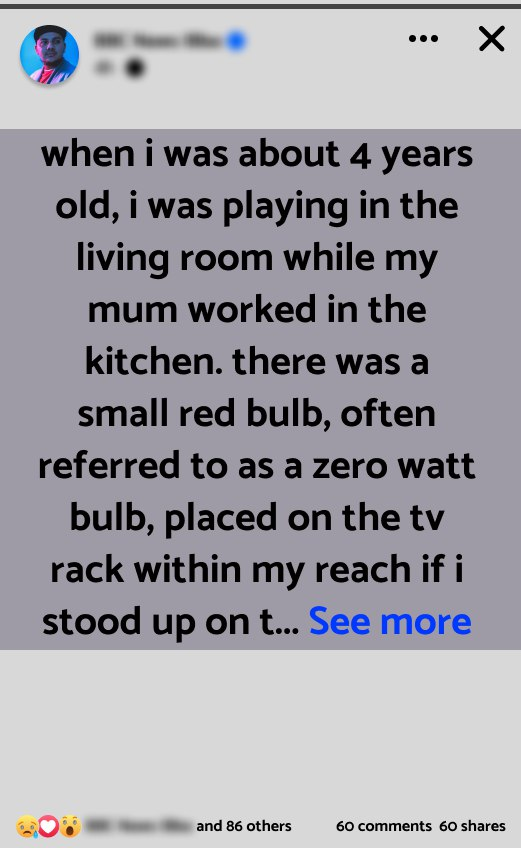 The Day I Chewed a Light Bulb, FOUR-YEAR-OLD CHEWS GLASS BULB, LEARNS DANGEROUS LESSON. When I was about 4 years old, I was playing in the living room while my mum worked in the kitchen. There was a small red bulb, often referred to as a Zero Watt Bulb, placed on the TV rack within my reach if I stood up on the sofa. Curious, I grabbed the bulb and… See more.