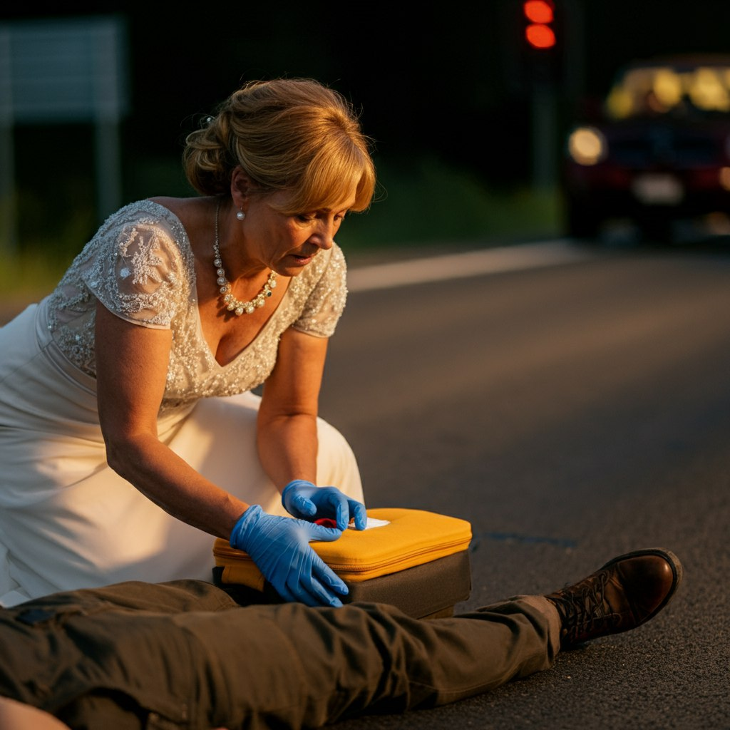 Despite the chaos, there was one thing everyone noticed—the woman in the beautiful dress, standing out amidst the emergency. My mom had come prepared, gloves in hand, determined to keep her dress clean. She was focused on saving a life, but still conscious of the fact that she had an important role to play at my wedding. As people watched, they saw her balance life-saving work with incredible grace and composure. She never wavered, and when the EMS finally took over, she made sure the woman was stable before leaving.