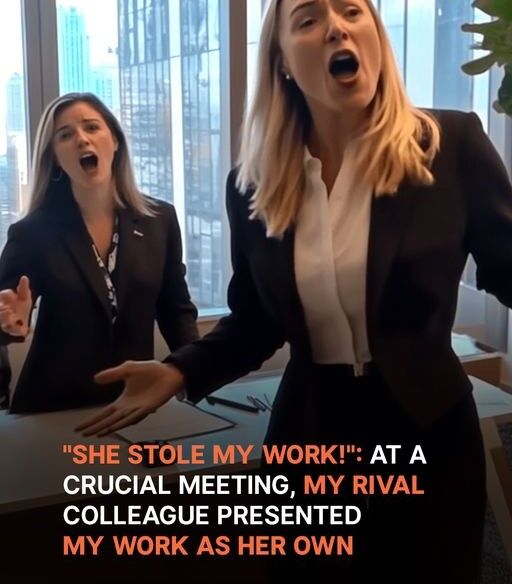 I pointed toward Beatrix, my voice trembling with anger. “That presentation was mine. She copied everything!”