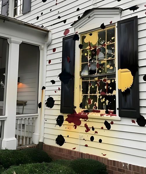 Instead, I walked up my driveway to find my house transformed into a graffiti artist’s nightmare. Red and yellow paint splattered across my windows, running down in messy streaks.