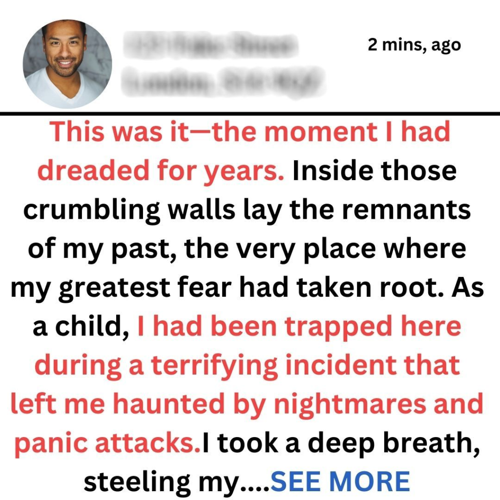 The air was thick with tension as I stood at the entrance of the abandoned warehouse, my heart pounding in my chest. This was it—the moment I had dreaded for years. Inside those crumbling walls lay the remnants of my past, the very place where my greatest fear had taken root. As a child, I had been trapped here during a terrifying incident that left me haunted by nightmares and panic attacks.I took a deep breath, steeling myself against the memories that threatened to overwhelm me. I had spent years working to overcome my fear of enclosed spaces, but this place represented more than just a physical challenge; it was a confrontation with the darkness that had loomed over my life for too long.With each step inside, echoes of my childhood flooded back. The flickering lights cast eerie shadows on the walls, and the musty smell of decay filled my nostrils. I could almost hear the whispers of fear that had haunted me since that fateful day. But today was different; today, I was ready to reclaim my power.