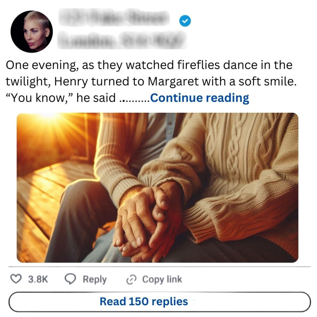As the years passed, they built a life together—navigating college, careers, and raising their two children. They faced hardships, too; the loss of loved ones and financial struggles tested their bond. Yet, through it all, they leaned on each other. Margaret often recalled how Henry would surprise her with flowers after a tough day or how he would hold her close during storms, whispering that everything would be alright.Now, in their golden years, they cherished the little moments that defined their love. Every morning began with coffee on the porch, where they would reminisce about their youth—like the time they got lost on a hiking trip but ended up discovering a hidden waterfall. They laughed about their teenage antics and marveled at how time had flown by.One evening, as they watched fireflies dance in the twilight, Henry turned to Margaret with a soft smile. “You know,” he said gently, “I’d choose you all over again.”Margaret’s heart swelled as she leaned in closer. “And I’d choose you every time.”