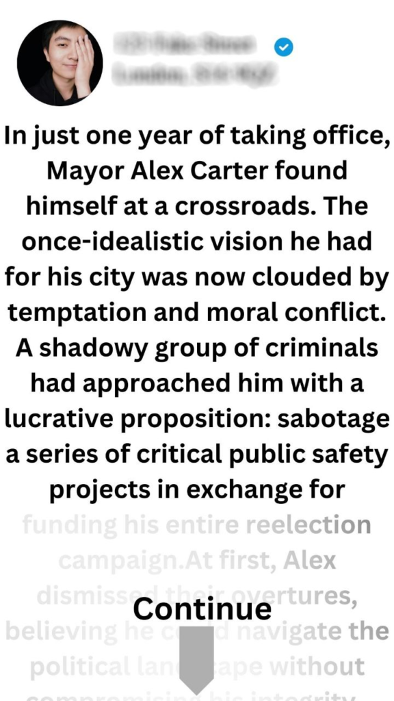 A Test of Integrity, Mayor Alex Carter faces a moral crossroads as corruption threatens to undermine his vision for the city.