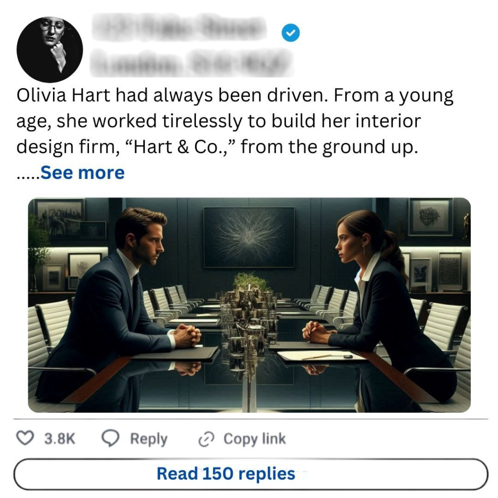 Olivia Hart had always been driven. From a young age, she worked tirelessly to build her interior design firm, “Hart & Co.,” from the ground up. With her keen eye for aesthetics and an unyielding work ethic, she transformed her passion into a thriving business, earning a reputation for excellence in the industry. Her clients ranged from young couples looking to renovate their first homes to high-profile celebrities seeking bespoke designs. After years of dedication, she had finally achieved the success she had always dreamed of.However, just as she was preparing for the launch of her new flagship store, news broke that sent shockwaves through her world. Ryan Mitchell, the son of a wealthy local contractor, had launched his own interior design business—“Mitchell Designs”—with little more than a whim and his father’s financial backing. Unlike Olivia, Ryan had no experience in the field; he was simply bored and looking for something to occupy his time.