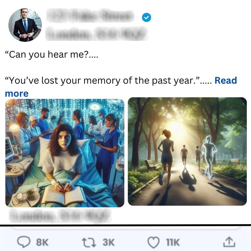 The world came back into focus slowly, like a camera lens adjusting to light. I blinked against the harsh brightness of the hospital room, the sterile scent of antiseptic filling my nostrils. Confusion washed over me as I tried to piece together how I had ended up here. My mind felt like a jigsaw puzzle with missing pieces, and the last year of my life was a blank slate.“Can you hear me?” a nurse asked gently, her voice soothing yet distant. I nodded, but panic bubbled inside me. “You were in an accident,” she explained, her eyes filled with sympathy. “You’ve lost your memory of the past year.”A year? My heart raced as I grappled with the void. What had happened? Who had I been? The nurse handed me a small notebook filled with scribbled notes and reminders, but as I flipped through the pages, nothing resonated. Names and dates swirled in my mind like ghosts—familiar yet foreign.