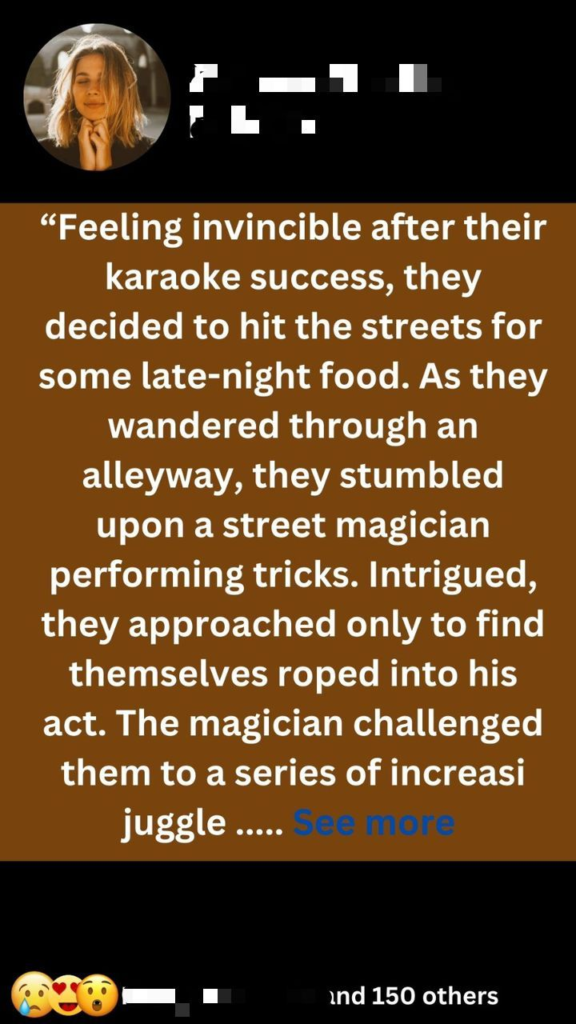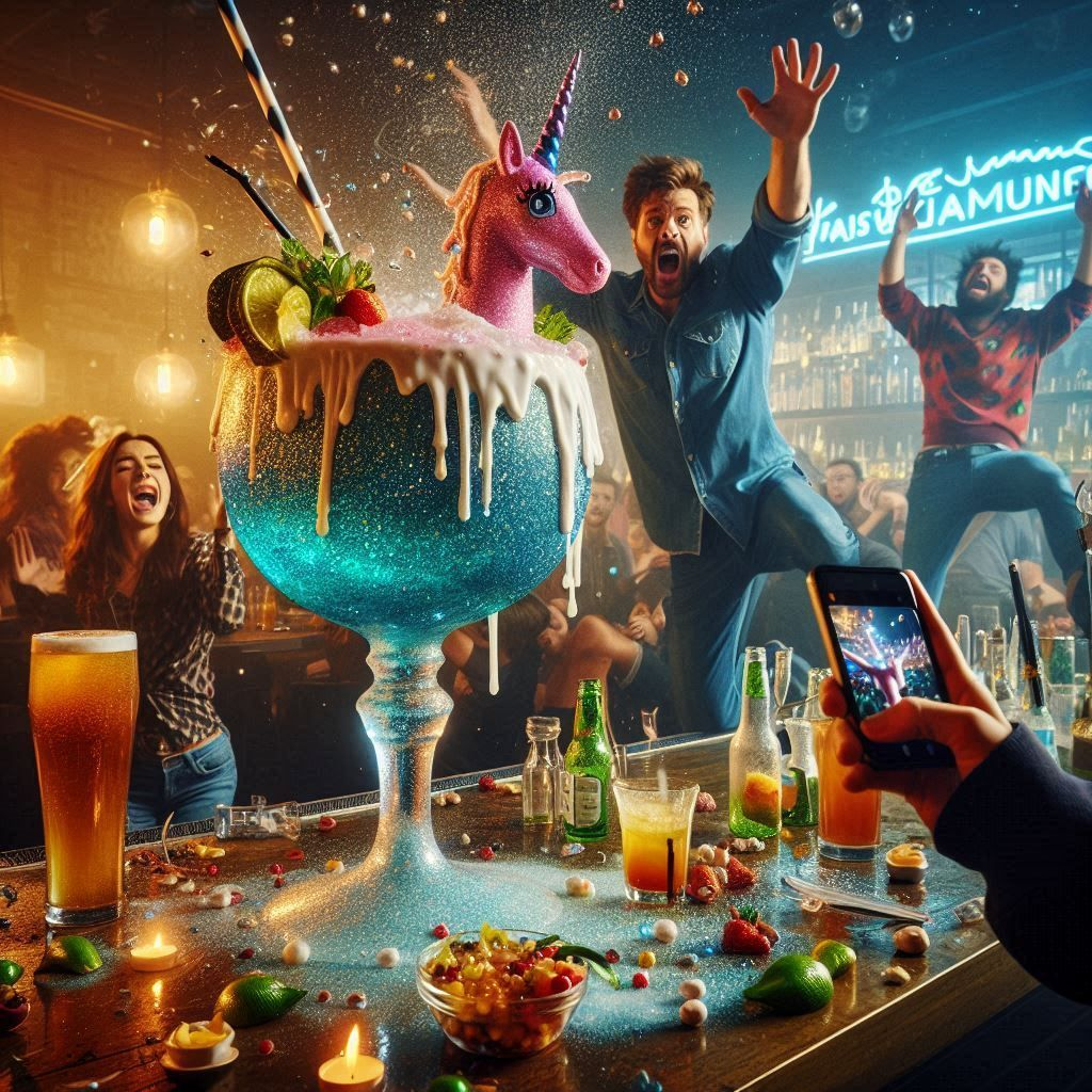 It was a Friday night, and three friends—Jake, Mia, and Sam—set out for what they hoped would be a fun evening in the city. Little did they know, their plans would spiral into a whirlwind of ridiculousness that none of them would soon forget.Their first stop was a trendy bar known for its outrageous cocktails. As they settled in, Jake decided to order the infamous “Flaming Unicorn,” a drink served in a giant, glittering goblet topped with edible sparkles and a rainbow-colored straw. Just as he took a sip, the bartender accidentally dropped a bottle of rum, causing a chain reaction that sent drinks flying everywhere. Mia, trying to dodge the incoming splash, slipped on a spilled cocktail and crashed into Sam, who was busy filming the chaos for Instagram. The video captured their hilarious tumble, which quickly went viral.Drenched but undeterred, the trio moved on to a nearby karaoke bar. Fueled by embarrassment and laughter, they signed up for an impromptu performance of “I Will Survive.” As they belted out the lyrics, Jake accidentally knocked over the microphone stand, sending it crashing into the DJ booth. The DJ retaliated by blasting an unexpected techno remix of their song, turning their heartfelt ballad into an absurd dance party. The crowd loved it, and soon everyone joined in for an impromptu dance-off.