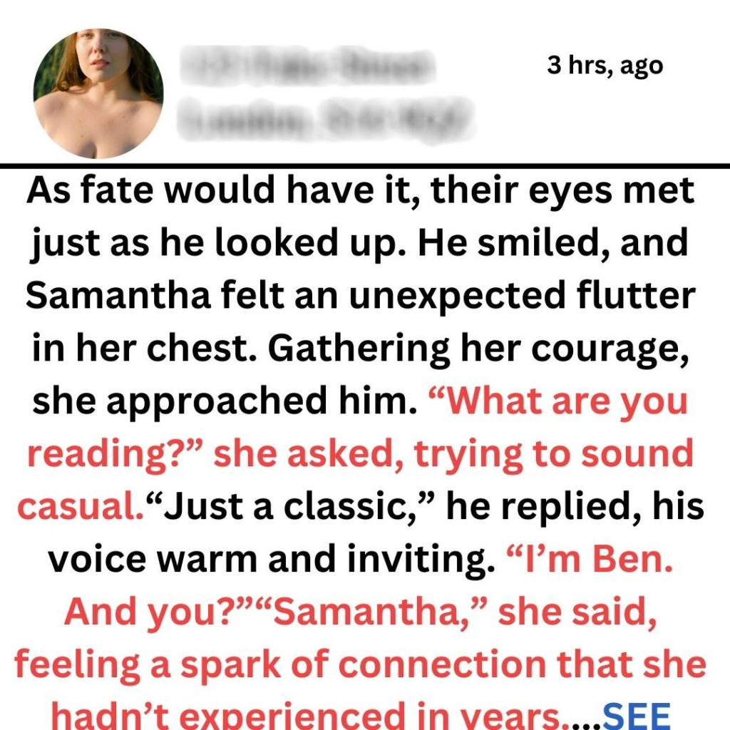 Samantha Hayes had always believed in the power of love. As a successful romance novelist, she poured her heart into crafting stories filled with passion, longing, and happily-ever-afters. Yet, despite her literary success, her own love life was a different story. At thirty-two, she found herself single and increasingly frustrated, feeling as though she were living in a world where love existed only on the pages of her books.One rainy afternoon, while sipping coffee in her favorite café, Samantha noticed a man at the corner table. He was engrossed in a book, his brow furrowed in concentration. There was something about him—a magnetic energy that drew her in. She couldn’t help but glance over repeatedly, intrigued by his presence.As fate would have it, their eyes met just as he looked up. He smiled, and Samantha felt an unexpected flutter in her chest. Gathering her courage, she approached him. “What are you reading?” she asked, trying to sound casual.