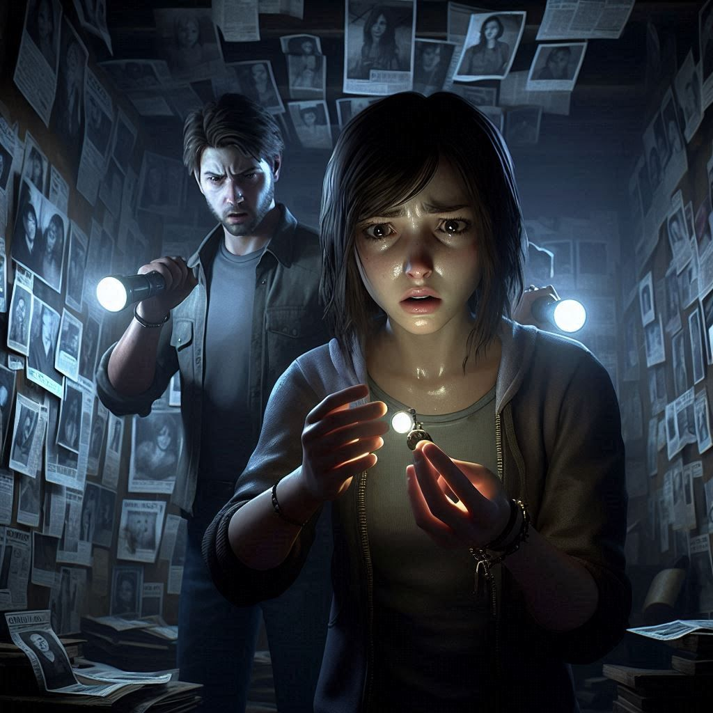 With a nod of agreement, Jake approached the door. It creaked ominously as he pushed it open, revealing a dark staircase leading down into the depths of the factory. “Should we?” he asked hesitantly, but curiosity outweighed caution.They descended slowly, each step sending a shiver down their spines. At the bottom, they found themselves in a dimly lit basement filled with an unsettling collection of items: photographs of missing people pinned to the walls, newspaper clippings detailing unsolved murders, and bizarre trophies that sent chills down their spines.“Is this…?” Mia’s voice trailed off as she picked up a small trinket—a bracelet belonging to one of the victims. Panic surged through her as they realized they had stumbled upon the killer’s hideout.Suddenly, a noise echoed from above—a heavy footstep followed by muffled voices. “We need to get out of here,” Jake urged, his eyes wide with fear. They turned to flee but froze when they heard the unmistakable sound of footsteps descending the stairs.