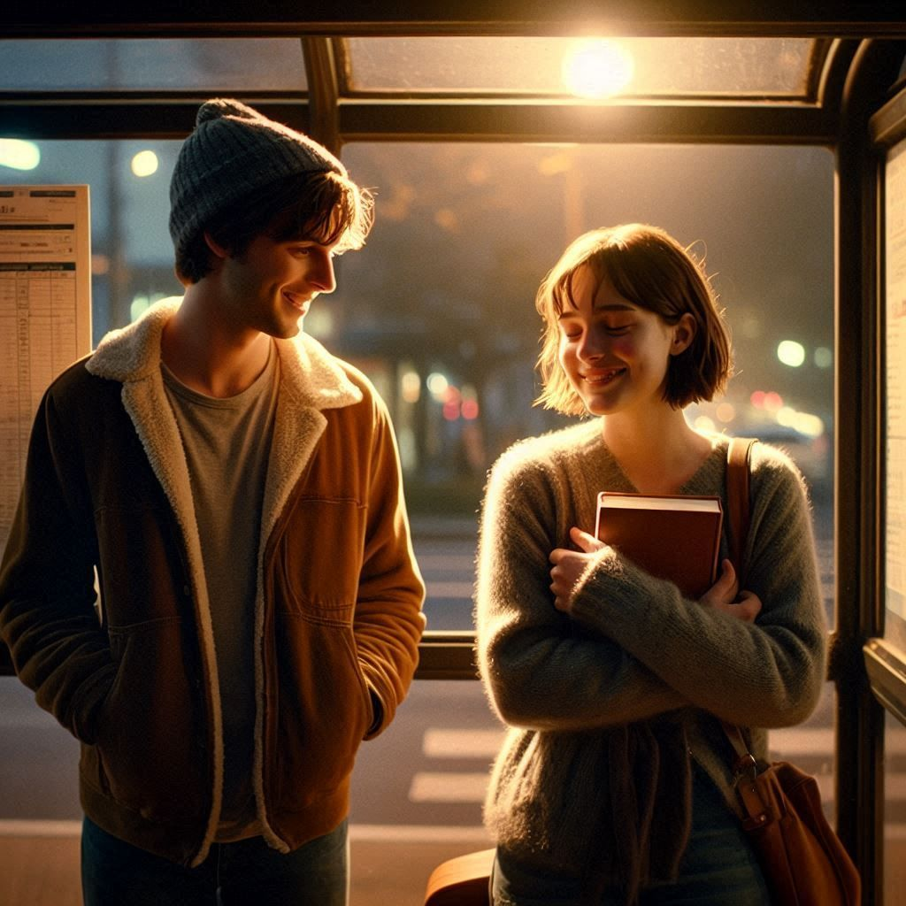 One chilly autumn morning, as Jamie waited for the bus, she felt an overwhelming urge to break the silence. Fate had orchestrated their paths too many times for her to ignore any longer. Gathering her courage, she took a deep breath and stepped closer to Alex.“Hi,” she said, her voice slightly shaky. “I see you here all the time. I’m Jamie.”Alex looked up from their book, surprise flickering across their face before transforming into a warm smile. “Hey! I’m Alex. Nice to finally meet you.”The conversation flowed easily as they exchanged stories about their favorite books and coffee spots. Jamie learned that Alex was an aspiring writer who found inspiration in everyday moments, while Alex discovered that Jamie was an artist who loved capturing the beauty of the city through her sketches.As they talked and laughed under the soft glow of the streetlight, Jamie realized that this moment was more than just an introduction; it was a culmination of all those fleeting glances and unspoken connections. Fate had nudged them together for a reason, and now that they had finally taken that step, Jamie felt a sense of excitement and possibility blooming within her.As the bus approached, Jamie couldn’t help but smile at Alex. “I guess we’ll be seeing each other more often now?”