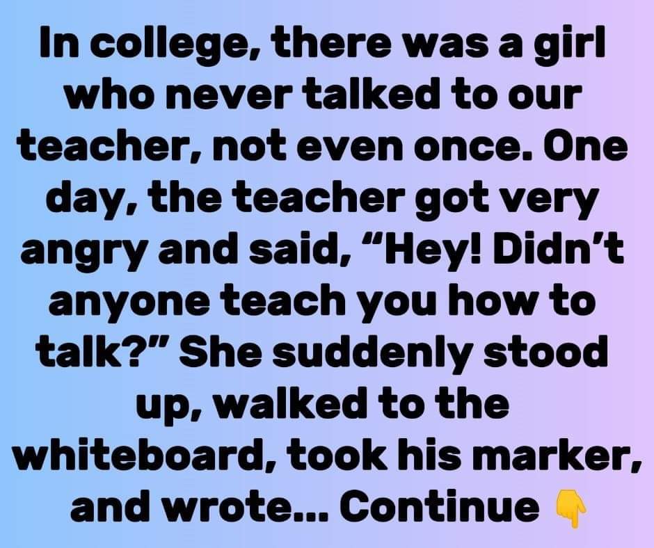 One day, the teacher got very angry. He thought she was ignoring him and being rude, so he shouted, “Hey! Didn’t anyone teach you how to speak?”