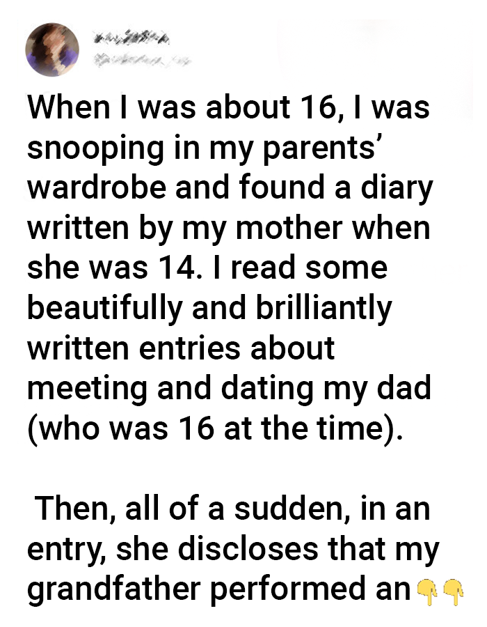 In one such entry, all of a sudden, she discloses that my grandfather, who was an anesthesiologist, performed an abortion for her. She never told anyone.