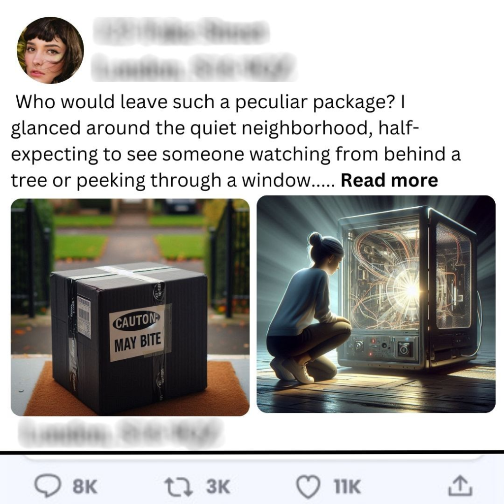The morning sun streamed through the window as I stepped out to grab the newspaper, but my routine was interrupted by an unexpected sight. A large black box sat ominously on my doorstep, its surface smooth and unmarked, save for a note taped to the front that read, “Caution: may bite.” My heart raced, a mix of curiosity and apprehension flooding my senses.Who would leave such a peculiar package? I glanced around the quiet neighborhood, half-expecting to see someone watching from behind a tree or peeking through a window. The box was roughly three feet tall and wide enough to make me wonder what could possibly be inside. I hesitated, weighing my options. Should I call the police? Or was this some elaborate prank?