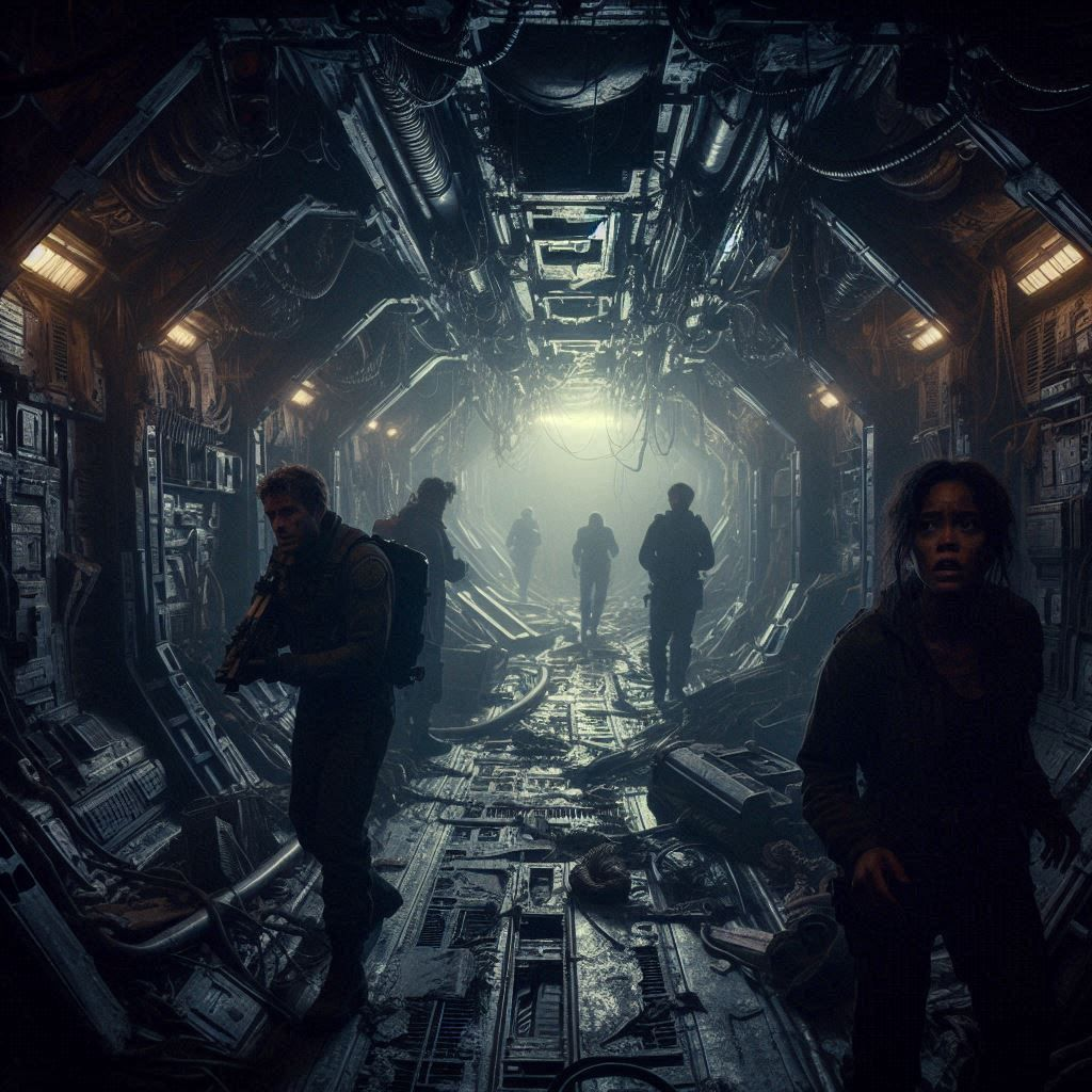 The interior of the Valiant was a maze of twisted metal and shattered glass, a testament to the violence that had claimed her. Alara and her team moved cautiously through the eerie silence, their footsteps echoing through the empty corridors. They found no signs of life, only the remains of those who had once called this ship home.But as they delved deeper into the Valiant’s bowels, they began to sense a presence—a malevolent force that seemed to feed on their fear. Strange noises echoed through the halls, and shadows danced at the edges of their vision. Alara knew they were not alone, and that whatever had happened here was far from over.