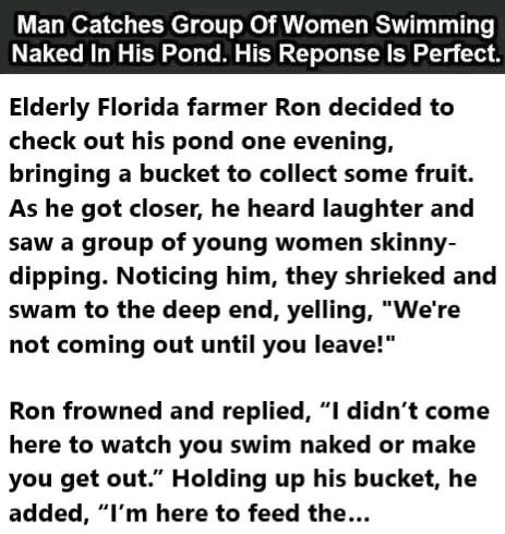 Elderly farmer Ron went to his pond one evening, bucket in hand, to pick some fruit.