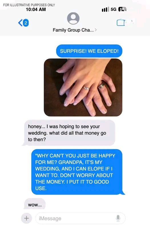 One morning, a message popped up in our family group chat. My granddaughter had eloped. No grand celebration, no family gathering, nothing. For the past year, she let me believe I’d be part of her special day. I even helped pick the cake flavor.I couldn’t believe it. I worship the ground she walks on, but I had to know — where did the $38,000 I gave her go? Her answer crushed me. Now, I question if I ever truly knew my granddaughter. What she did with the money is in the comments below”””