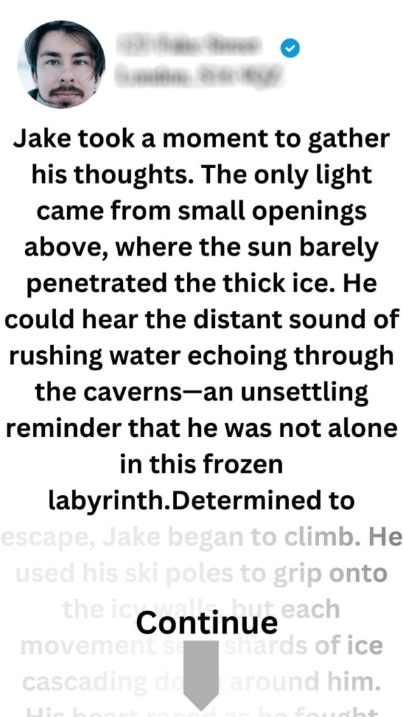 After a harrowing fall into the depths of a glacier cavern, a skier battles fear and exhaustion to escape the icy labyrinth, discovering both the beauty and danger that lie hidden beneath the surface.