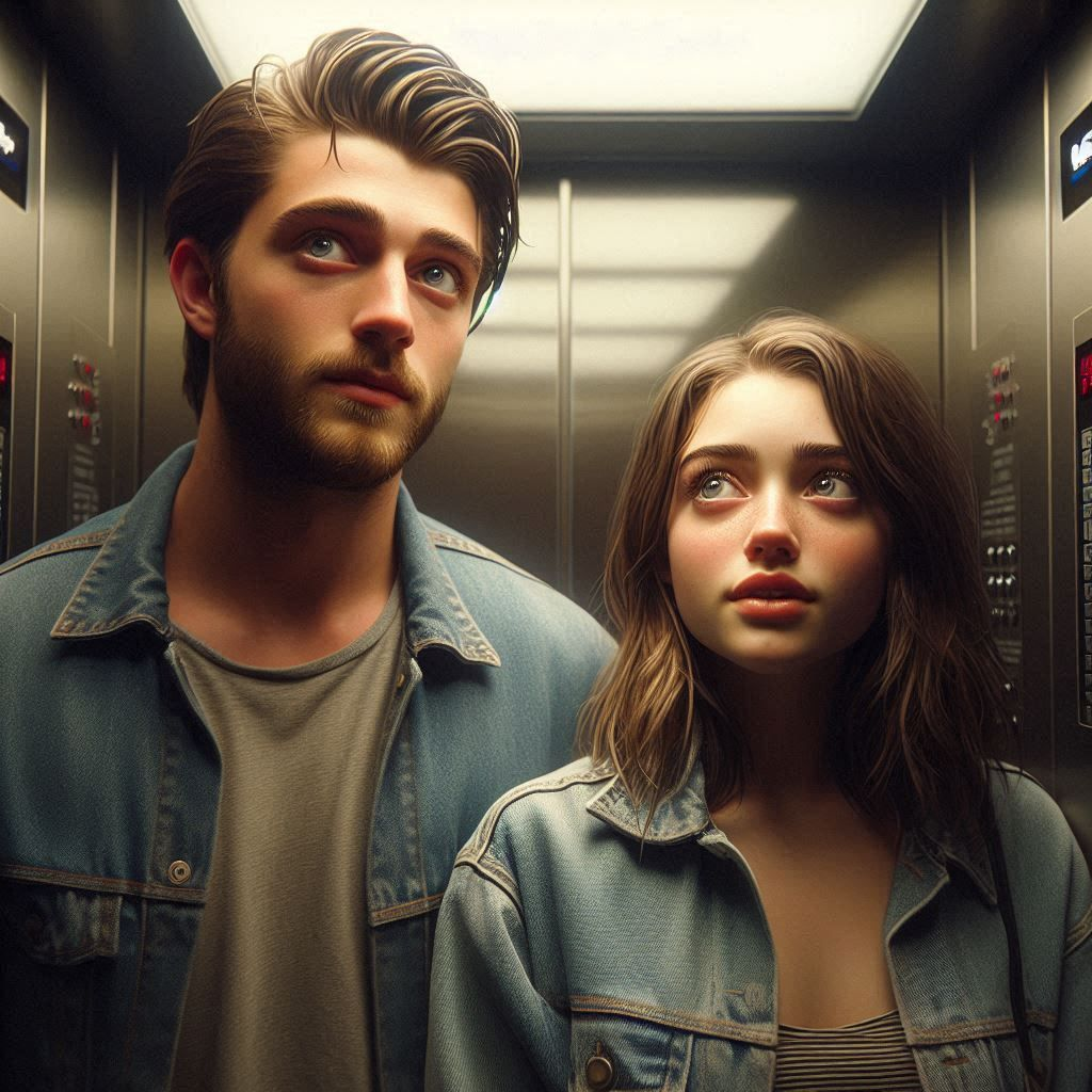 The day had started like any other, but as Emma stepped into the office building, she felt a strange sense of anticipation. She was running late for an important meeting and hurriedly pressed the elevator button. As the doors slid open, she stepped inside, only to find a tall, handsome stranger already there. He had tousled dark hair and a charming smile that made her heart skip a beat.“Hey there,” he said, his voice smooth and confident. “Looks like we’re both in a hurry.”Emma smiled back, feeling a flutter of excitement. “Yeah, I’m late for a meeting. How about you?”“Just heading to a conference on the top floor,” he replied, leaning casually against the wall. The elevator began its ascent, but suddenly, it jolted to a stop. The lights flickered before settling into an unsettling silence.“Great,” Emma muttered, glancing at the control panel. “Just what I needed.”The stranger chuckled softly, trying to lighten the mood. “Well, at least we have each other’s company.” He extended his hand. “I’m Jake.”