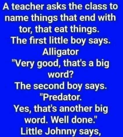 A teacher asks the class to name things that end with tor, that eat things…