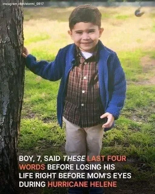 Little Micah Drye was found dead after Hurricane Helene. HIS FINAL WORDS that break hearts are in the comment below. Condolences to his mother.