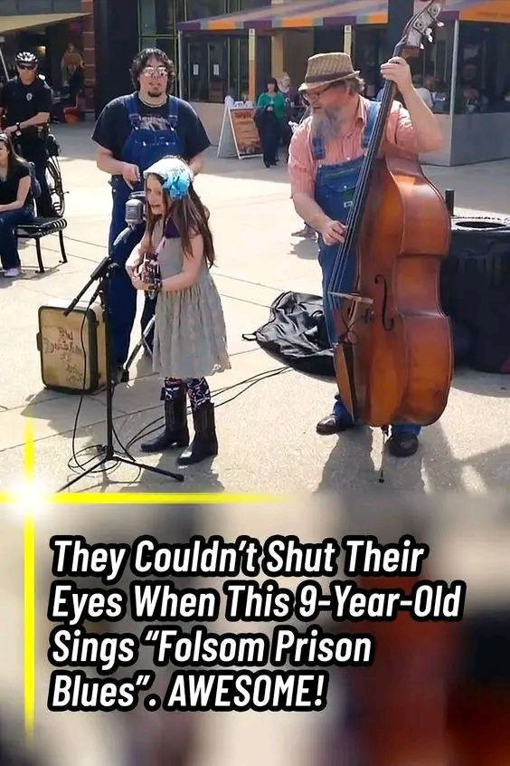 A nine-year-old girl named Emi Sunshine captivated an audience in Knoxville, Tennessee, with her remarkable performance of Folsom Prison Blues. Performing confidently in front of a large crowd, Emi effortlessly strums her guitar and sings the classic Johnny Cash song with a voice that sounds as if she has years of professional training. Despite her youth, she holds her own, playing several instruments, including the mandolin, kazoo, ukulele, banjolele, and piano. Accompanied by a two-member band of older musicians, Emi’s talent left the audience in awe. One spectator was so impressed that she even placed money in the tip box. Emi’s performance is a testament to her extraordinary musical abilities, and the video of her singing has been widely shared, leaving viewers in disbelief at how such a young girl could perform with such skill and poise.