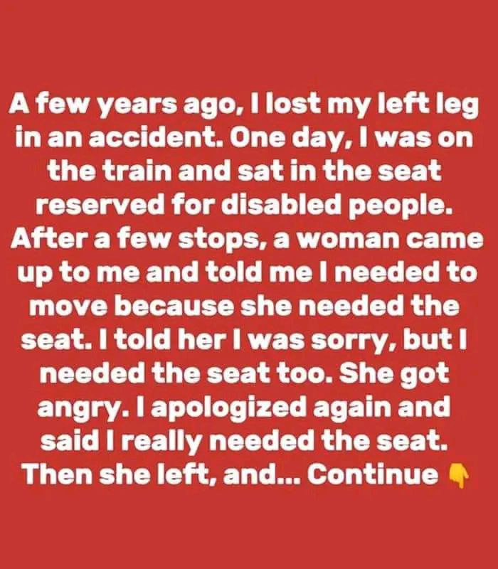 A viral incident occurred when a girl with a prosthetic leg was confronted by an elderly woman on public transport, demanding she give up her seat, which was reserved for the elderly, disabled, and pregnant individuals. The girl, who lost her leg in an accident and uses a prosthetic that looks like a normal leg when covered, politely declined. The woman called a conductor to insist the girl vacate the seat. In response, the girl revealed her prosthetic leg, asserting her need for the seat, and the woman left, embarrassed.