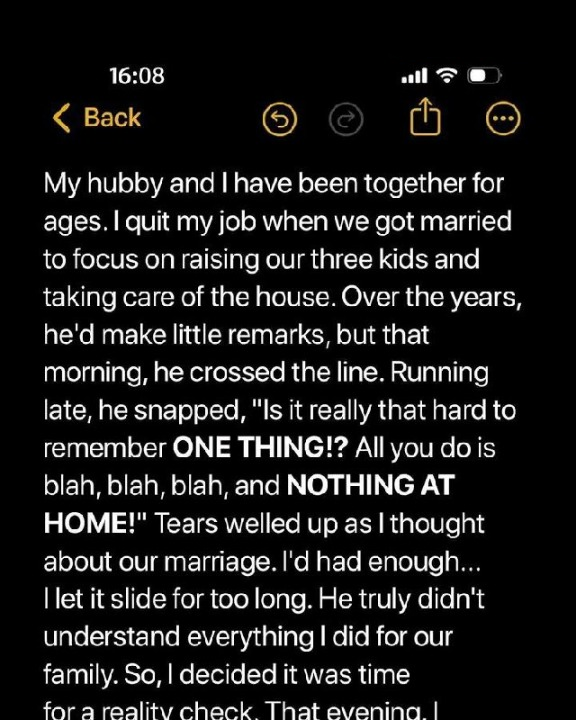 Husband Constantly Mocks Unemployed Wife for Doing Nothing, Finds a Note a