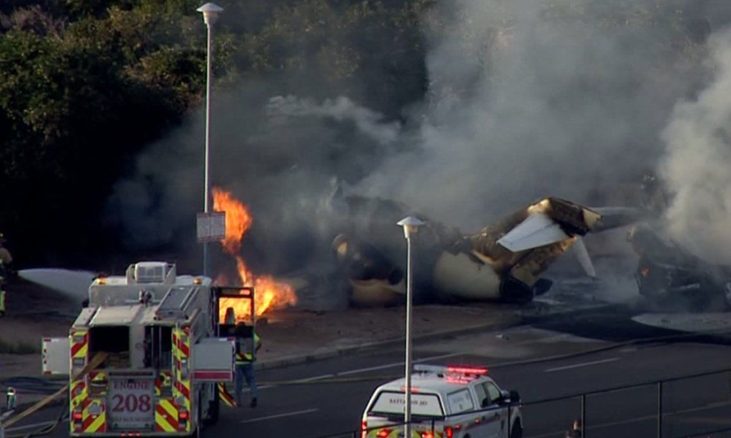 Five individuals tragically lost their lives when a small jet crashed into a vehicle shortly after takeoff from Falcon Field Airport in Mesa, Arizona, on November 5, 2024. The incident occurred around 4:40 PM local time when the Honda HA-420 jet attempted to take off but failed, crashing through the airport’s perimeter fence and colliding with a vehicle on Greenfield Road.Authorities confirmed that all five victims were aboard the aircraft, which included a pilot and four passengers. Among the deceased were Spencer Lindahl, 43; Rustin Randall, 48; Drew Kimball, 44; and Graham Kimball, 12. One person on the plane survived and was hospitalized with burn injuries. The driver of the vehicle also died, although their identity has not yet been released.