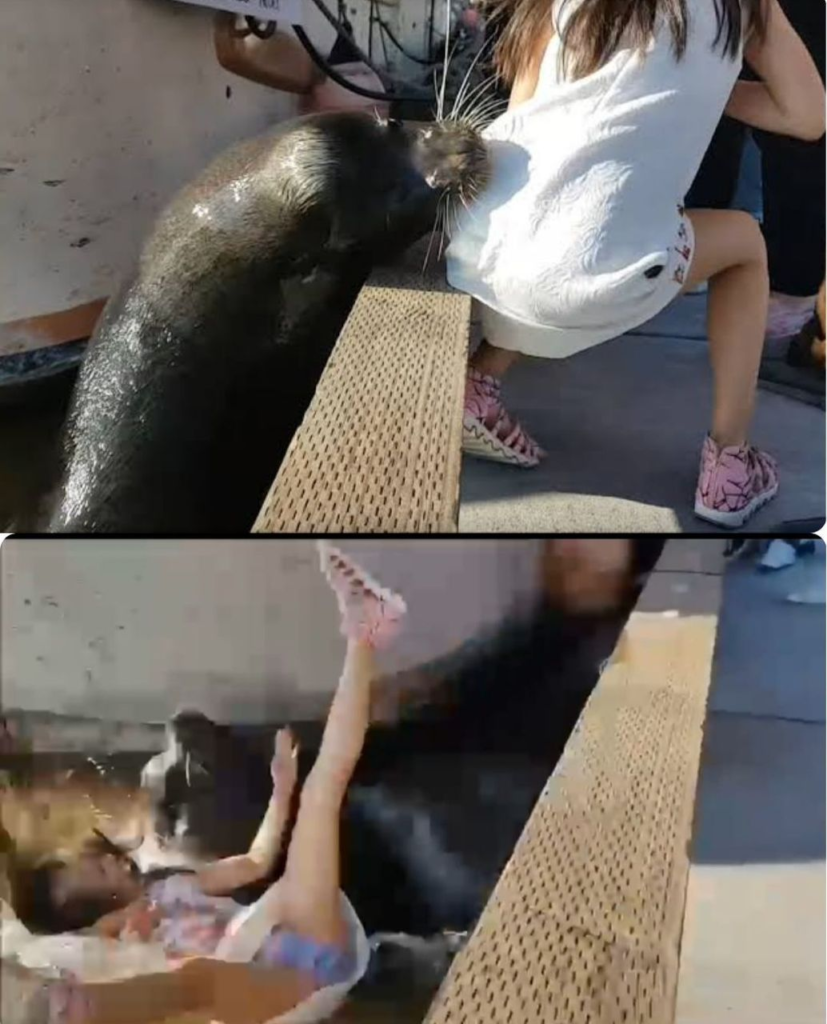 A recent and alarming incident involving a sea lion has gone viral after a video showed the animal pulling a young girl into the water. The girl, the daughter of a famous personality, was sitting on a dock at Steveston Fisherman’s Wharf in Richmond, British Columbia, when the sea lion lunged at her, likely mistaking her white dress for food. It grabbed her dress and pulled her into the water but released her shortly afterward.Fortunately, an adult nearby jumped in to assist the girl, who emerged soaking wet but unharmed. Experts suggest that the sea lion’s behavior was not aggressive but rather a result of confusion, as it may have been attracted to the movement of her dress. Andrew Trites, a marine mammal expert, emphasized the importance of maintaining a safe distance from wild animals like sea lions.
