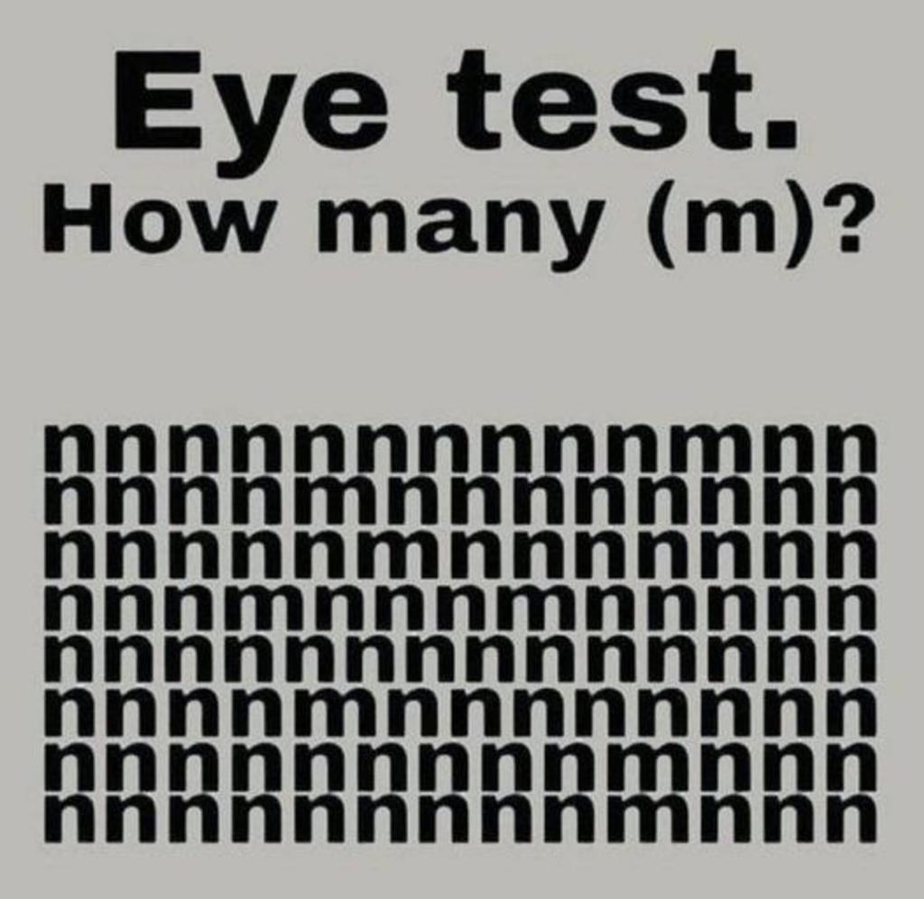 The “Eye Test” challenge asks participants to spot the number of “m”s hidden in a grid of “n”s. Though the grid appears simple, the challenge lies in the subtle differences, making it tough to identify the “m”s. This puzzle tests attention to detail, visual perception, and patience. The popularity of such tests stems from their ability to engage our brains and provide a mental workout. By forcing participants to shift from automatic pattern recognition to focused observation, it sharpens cognitive skills. Successfully completing it indicates strong attention and focus, while struggling may signal a need for more mindfulness.