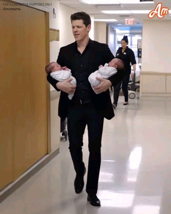 There, walking down the hallway, was my husband — dressed in a sharp, expensive black suit, perfectly styled hair, and wearing a fancy watch. And in his arms? He was holding TWO newborn babies!