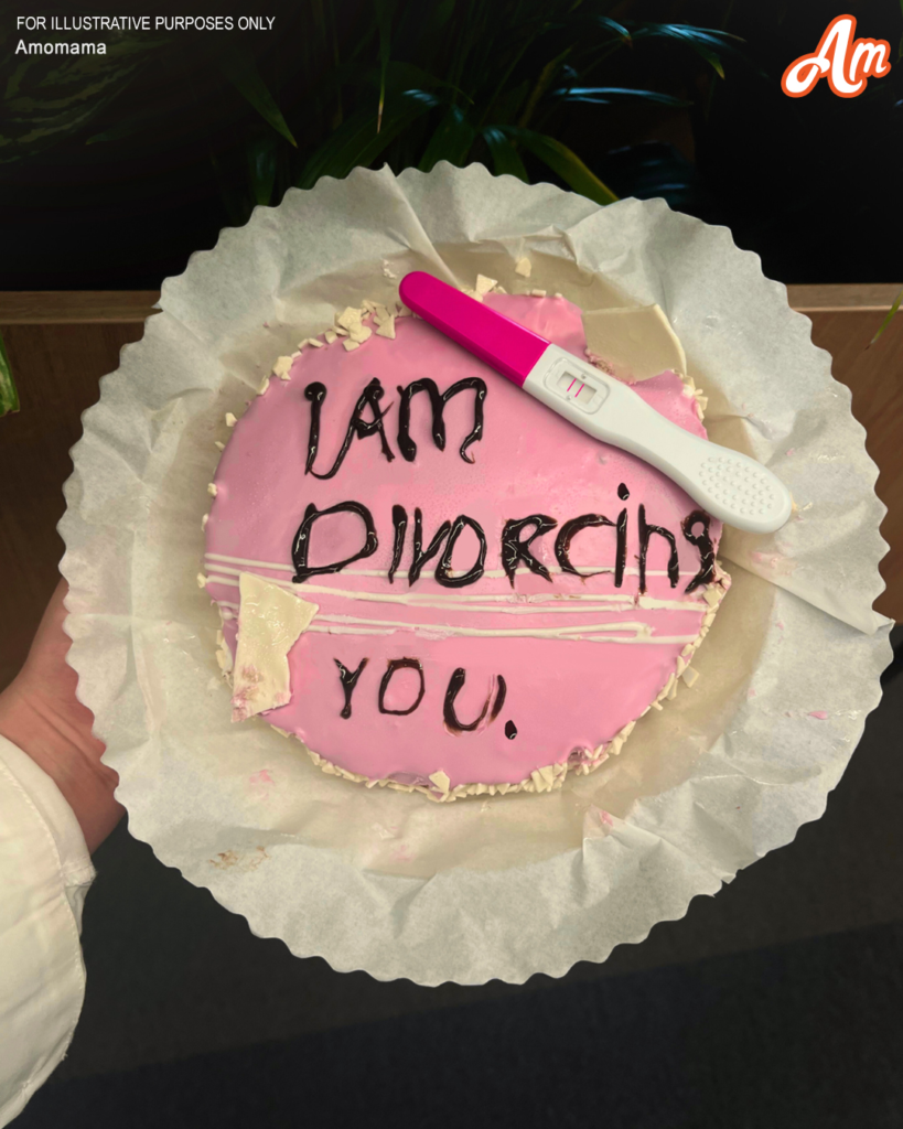 I was having a normal day at work until I received a delivery of a cake from the bakery where my husband worked. I thought it was such a sweet surprise, so I called my colleagues over to share the cake. The room FELL SILENT when I opened the box. In messy handwriting with chocolate cream, it said, “I AM DIVORCING YOU,” and A POSITIVE PREGNANCY TEST was lying on the icing.