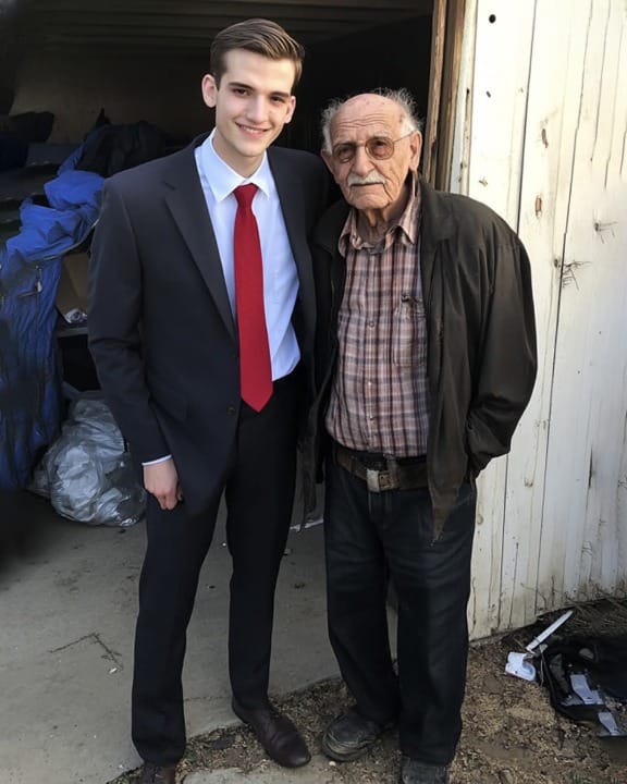 Seven years ago, an elderly teacher named Mr. Harrison noticed a cold, hungry boy named Alex struggling with only a few coins. The teacher kindly invited him to share a meal, offering comfort and warmth. Alex, embarrassed but desperate, accepted. Over lunch, they spoke, and Mr. Harrison learned about the boy’s difficult circumstances. Seven years later, Mr. Harrison, now frail and living in a cold apartment, was surprised by a knock on his door. Standing there was a grown-up Alex, dressed well and holding a large gift basket. Alex had come to repay Mr. Harrison’s kindness, proving that generosity can come full circle even after many years.