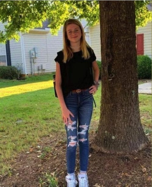 Brooke Mills, excited for her first day of seventh grade, posed for a photo outside with her mother. What seemed like an ordinary moment quickly turned into a surprise when they discovered an unexpected guest in their pictures. While taking shots near a tree, her mother noticed something unusual and realized a snake was lying on the tree trunk, eyeing the seventh-grader.