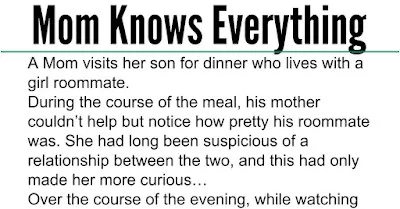 This humorous story revolves around a son’s attempt to reassure his mother that there is nothing romantic between him and his female roommate. During a dinner, the mother grows suspicious of their relationship and wonders if they are more than just roommates. Sensing her thoughts, the son tries to clarify by telling her that they’re simply roommates. However, a week later, his roommate mentions that a silver plate went missing after the dinner, and the son decides to email his mother to ask if she took it.