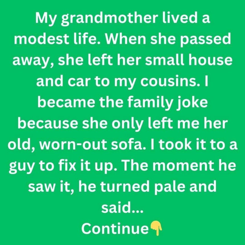 I became the family joke because she only left me her old, worn-out sofa. I took it to a guy to fix it up.
