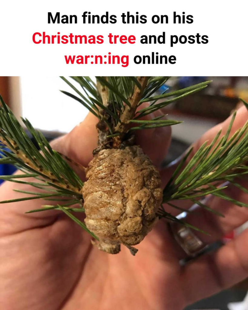 A man’s holiday took an unexpected turn when he found a praying mantis egg case, or ootheca, nestled in his Christmas tree. Sharing his discovery online, he warned others to inspect their trees carefully to avoid indoor hatching events.