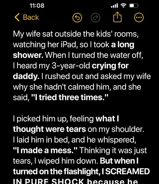 I heard a faint cry as I stood under the hot water. At first, I ignored it, thinking it was nothing serious. But then, the cry got louder, more desperate.