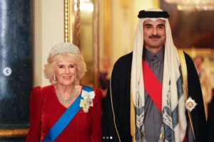During a state banquet on December 3, Queen Camilla, 77, donned Queen Elizabeth II’s iconic Kokoshnik tiara, symbolizing continuity in the monarchy. Held at Buckingham Palace in honor of Qatar’s Amir Sheikh Tamim bin Hamad Al Thani and Sheikha Jawaher, the event celebrated UK-Qatar relations in diplomacy and trade.