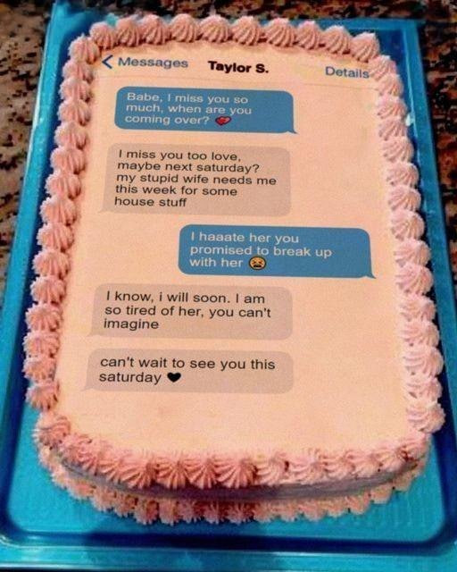 At Tom’s lively birthday party, a surprise cake revealed a shocking secret. The cake, decorated with a screenshot of intimate messages between Tom and a woman named Jenna, turned the celebration into chaos. Guests fell silent, whispers of disbelief cutting through the air.
