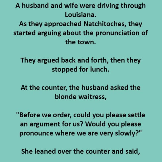 As they approached Natchitoches, they started arguing about the pronunciation of the town.