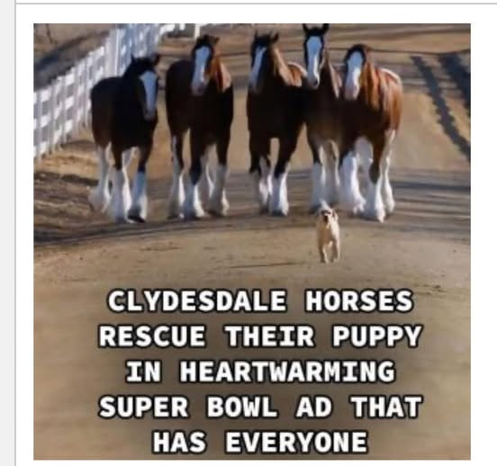 It’s kind of like a big holiday — a fun-and-games version of Thanksgiving. Beyond all that, there is one other reason people tune in to the big game: the commercials. You’ve probably got friends who couldn’t care less about football but will greet you the next day with, “Did you see the commercial…” Some of the best-known, most iconic Super Bowl commercials feature the beloved Budweiser Clydesdales. Each year, Anheuser-Busch produces a unique ad for their flagship product that they air during the biggest TV event of them all. The Budweiser Clydesdales tradition goes back to 1933 and the end of Prohibition. To celebrate the return of beer, the son of the company’s president arranged for a beer wagon pulled by a team of the majestic horses….