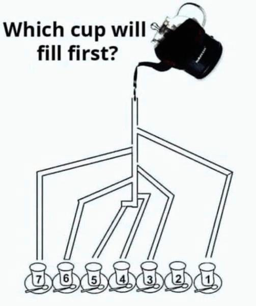 Cups 5, 6, and 7 are all located in branches further down the system, and their paths are either obstructed or long.