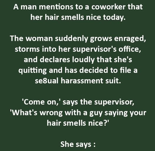 In today’s workplace, even a harmless compliment can spark chaos. Consider this: a man tells his coworker her hair smells nice. Instead of a polite “thank you,” she storms into her supervisor’s office, furious, declaring she’s quitting and filing a harassment suit.