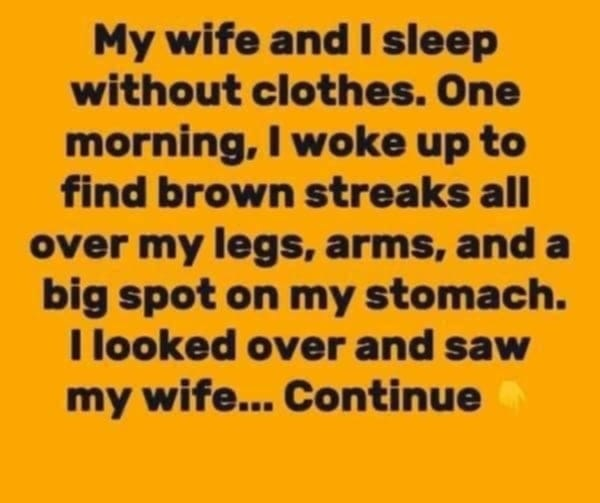 My wife and I sleep naked. One morning, I woke up to find brown streaks all over my legs, arms, and a big spot on my stomach.